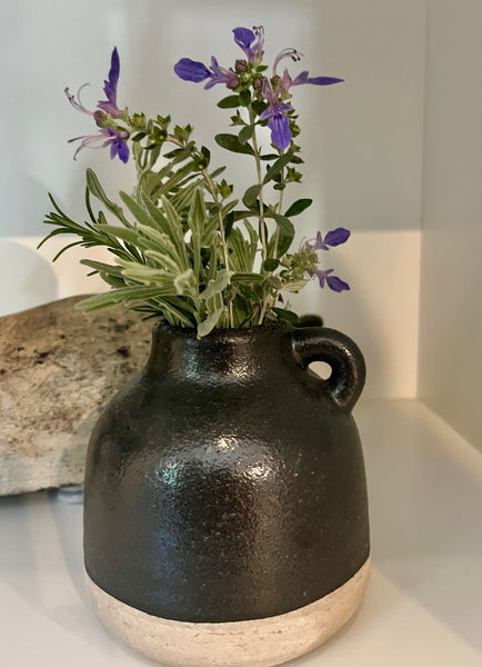 Organic and artfully shaped ceramic vases. Hand-crafted so each piece is unique in detail and shape. Neutral styling fits with any decor. Material: Stoneware · Size: 4.75" H x 4.75" Dia · Care Instructions: Hand Wipe Only