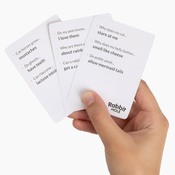 We took the most revealing internet searches and removed the last few words – can you guess the most popular ending? • Players take turns reading the beginning phrase to popular internet searches and must then try to complete it with the most believable answer. • You don't need to be right; you just need to be convincing! Players score points by fooling their friends into believing their answer is the correct ending! • However, the correct ending is always mixed in, so you’ll have to be savvy with your submission. What might your opponents fall down an internet search query rabbit hole for!?