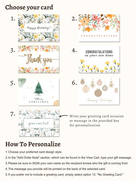 - If you prefer not to include a greeting card, simply select option 13. "No Greeting Card."