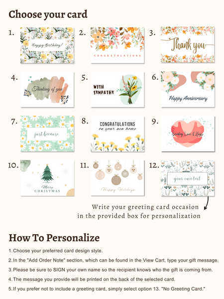 • If you prefer not to include a greeting card, simply select option 13. "No Greeting Card."