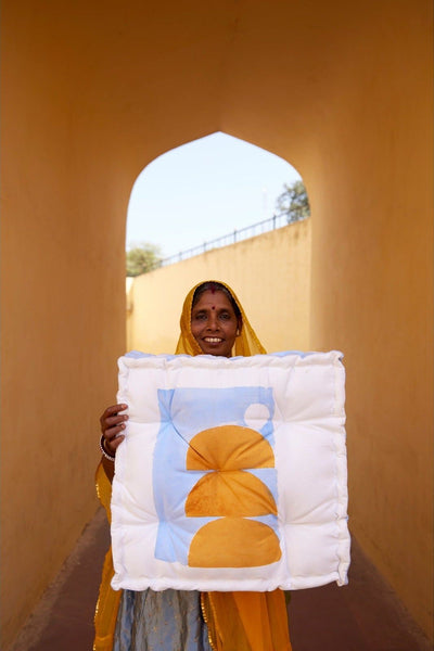 Each floor cushion is handmade in small batches in India. Due to the handcrafted nature of this item, there will be slight variations in the appearance of each piece.