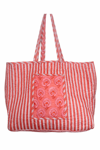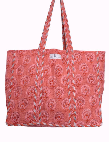 Block printed reversible tote bag with large interior pocket. Made from super soft quilted cotton.